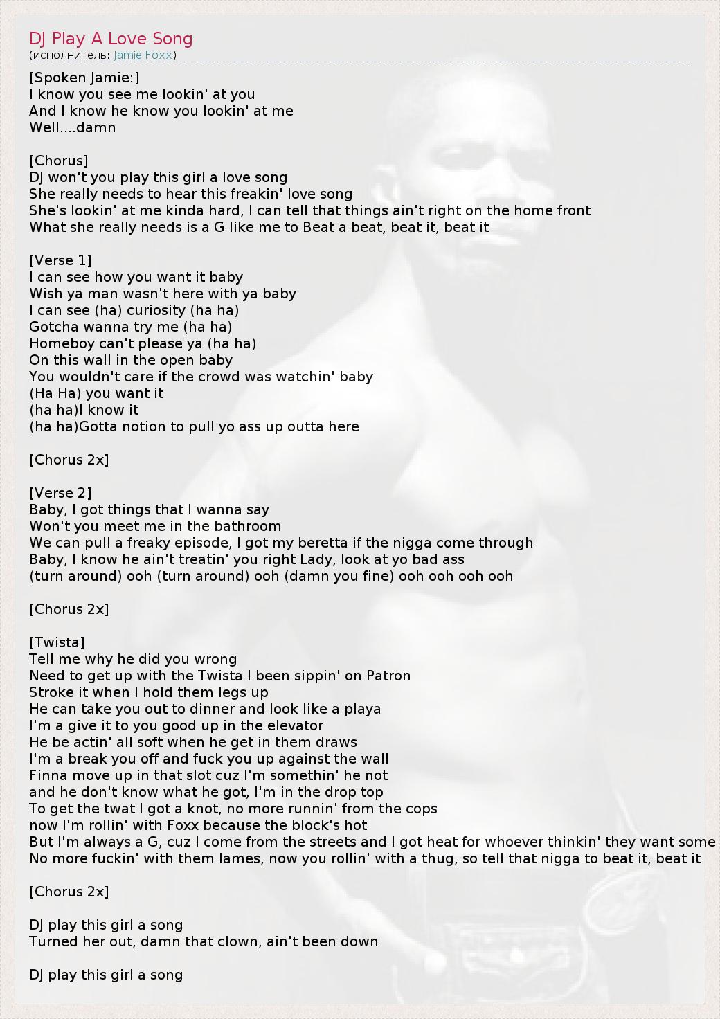 А как ты думаешь, о чем песня "DJ Play A Love Song" ?