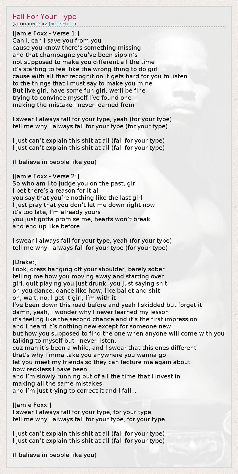 А как ты думаешь, о чем песня "Fall For Your Type" ?