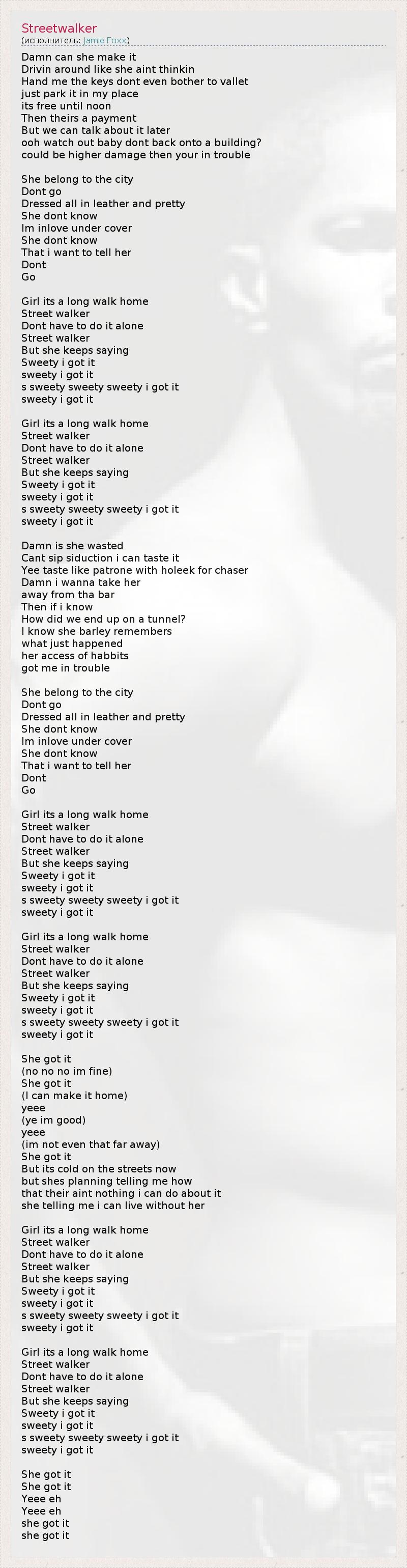 А как ты думаешь, о чем песня "Streetwalker" ?