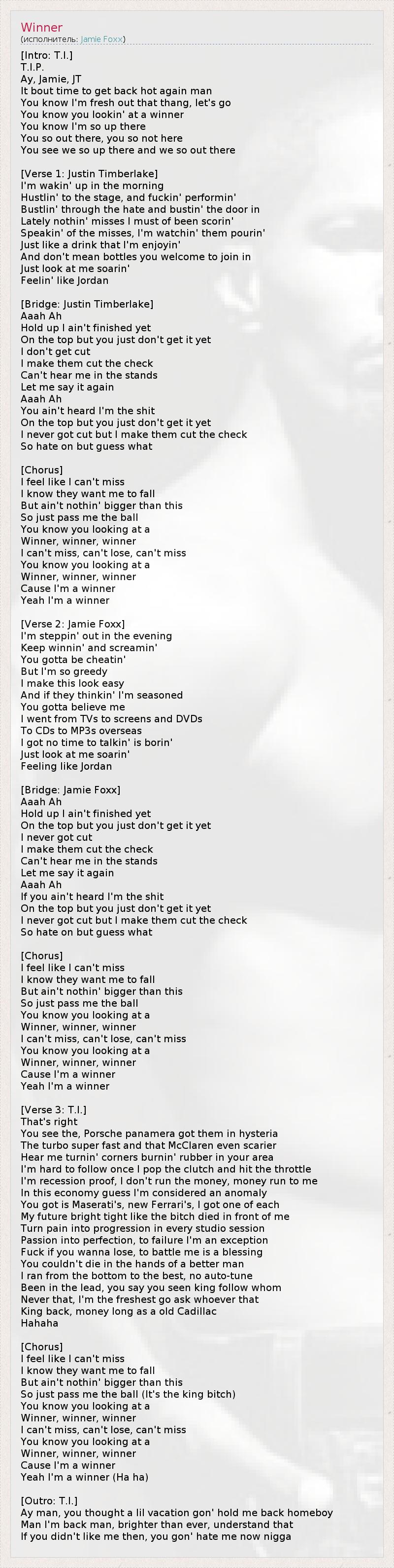 А как ты думаешь, о чем песня "Winner" ?