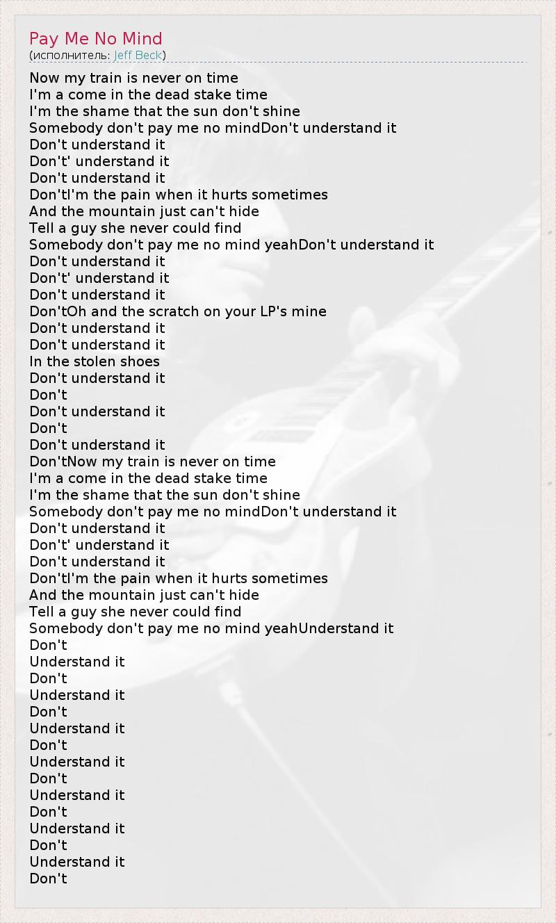 А как ты думаешь, о чем песня "Pay Me No Mind" ?
