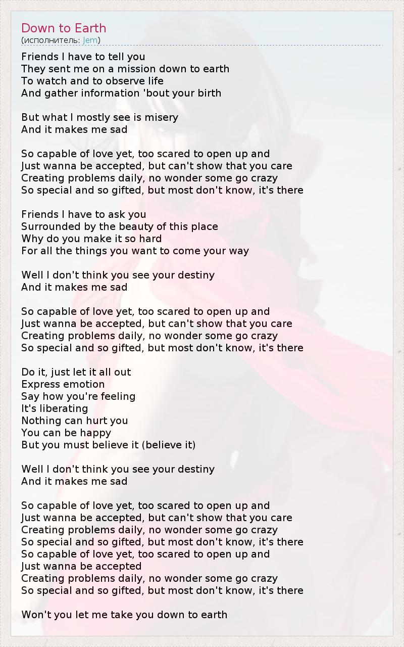 А как ты думаешь, о чем песня "Down to Earth" ?