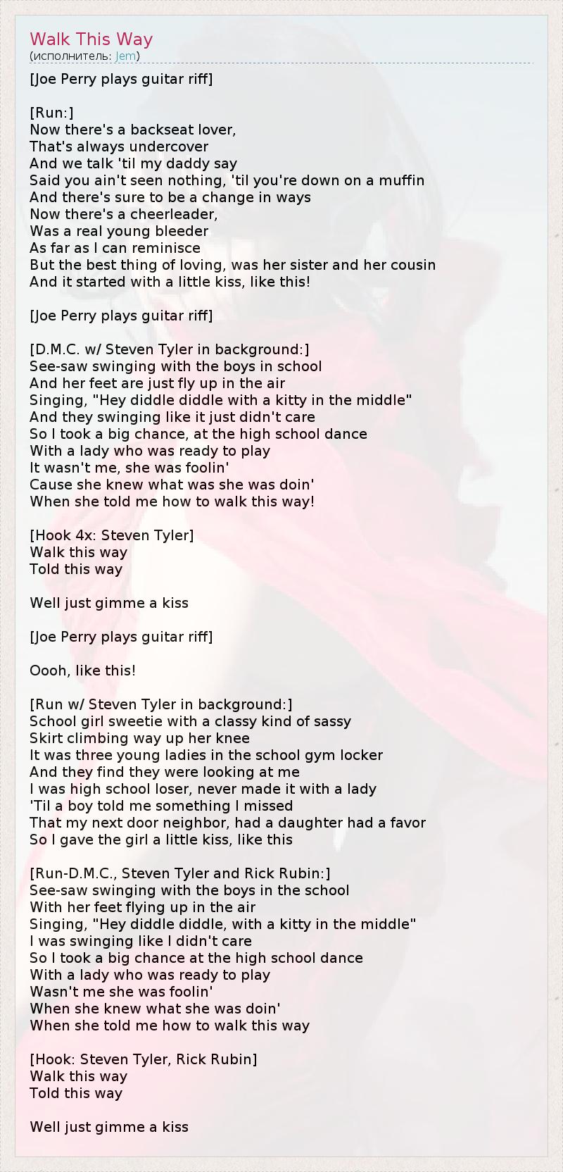 А как ты думаешь, о чем песня "Walk This Way" ?