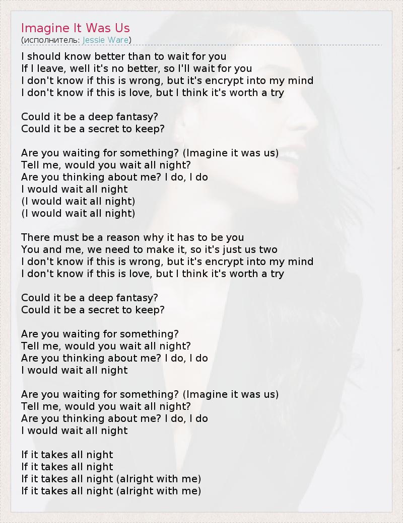 А как ты думаешь, о чем песня "Imagine It Was Us" ?