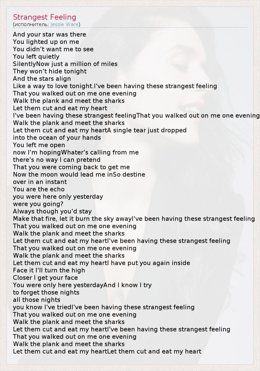 А как ты думаешь, о чем песня "Strangest Feeling" ?