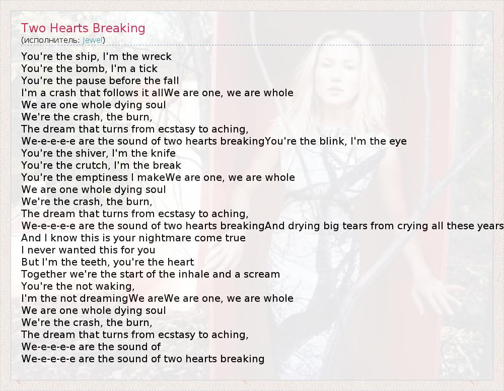 ГлавнаяИсполнителиJewelTwo Hearts Breaking