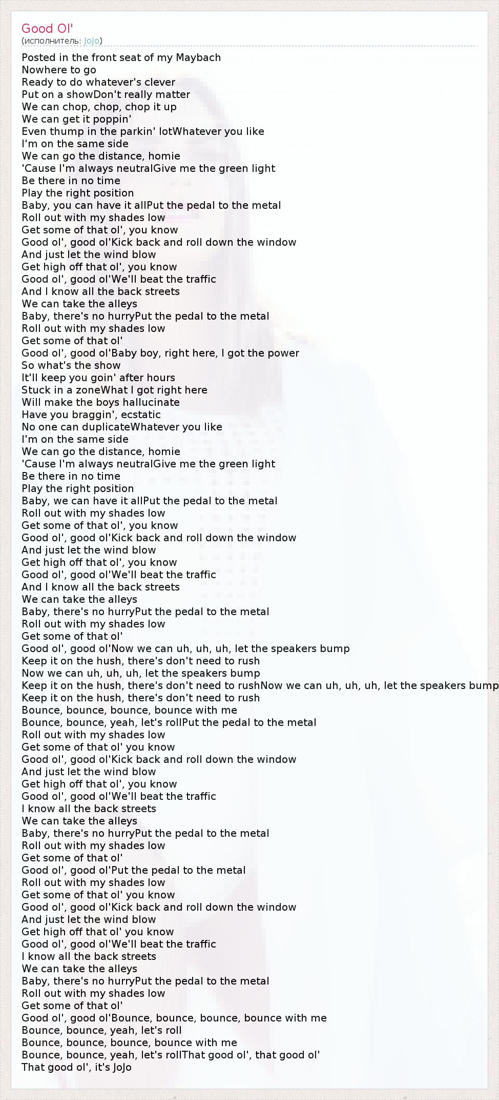 А как ты думаешь, о чем песня "Good Ol'" ?