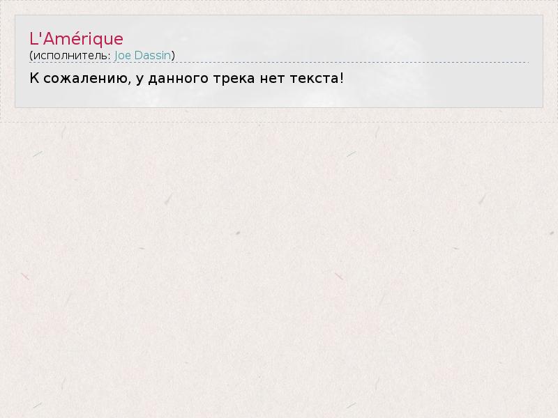 Это интересно:Джо Дассен (настоящее имя Джозеф Дассен) родился 5 ноября 1938 года в Нью-Йорке, в семье известного кинорежиссера Жюля Дассена (кстати, еврея-одессита по происхождению) и виртуозной скрипачки, солистки оркестра Пабло Кассаля, Беатрис Лонер. Семья была не всегда на гребне успеха и славы. За свои фильмы, рассказывающие о жизни рядовых американцев, часто из-за неудачных поисков работы становящихся... продолжение