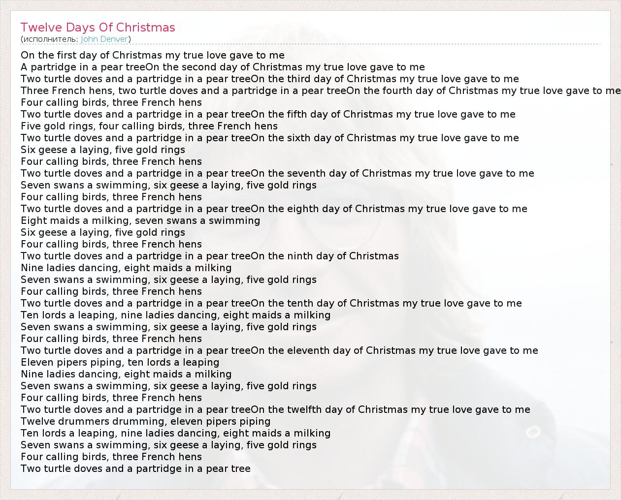 А как ты думаешь, о чем песня "Twelve Days Of Christmas" ?