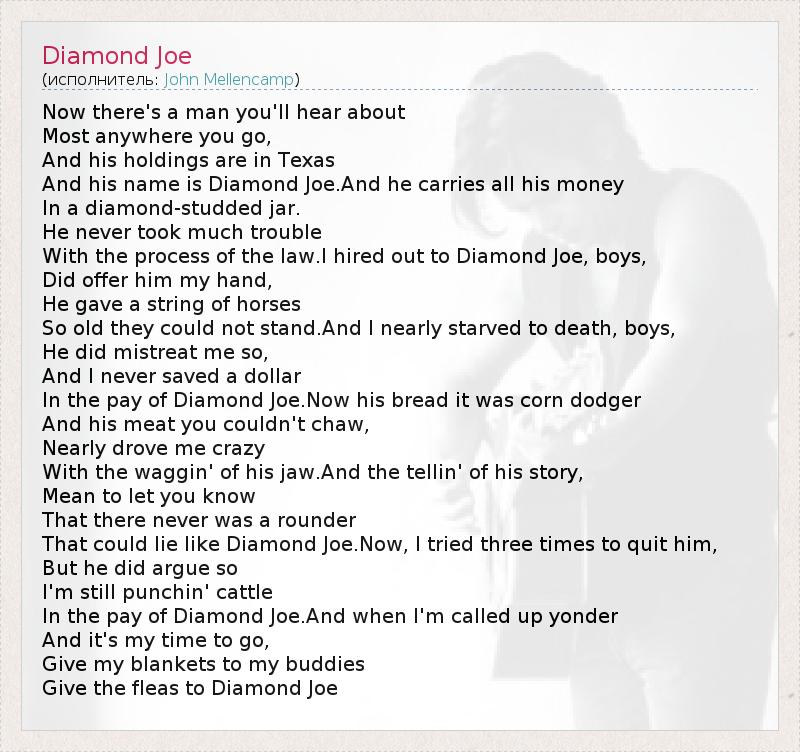 А как ты думаешь, о чем песня "Diamond Joe" ?