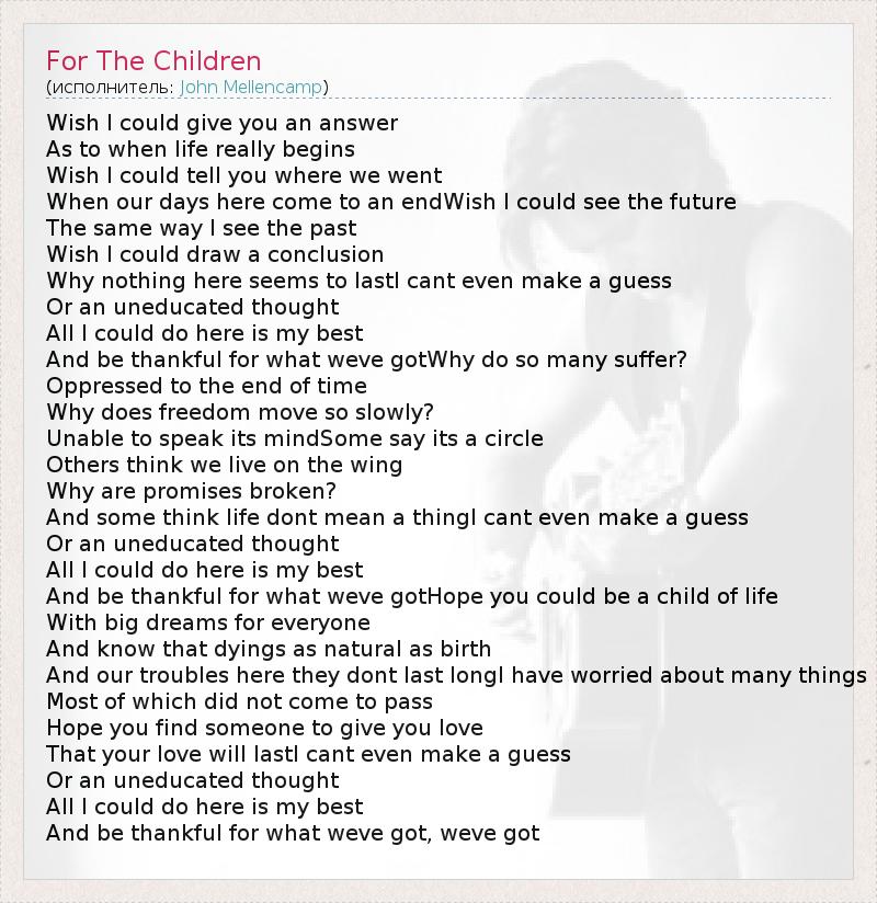 Это интересно:Мелленкэмп Джон Коугар (р. 7 октября 1951, Сеймур, Индиана) — американский рок-певец. Будучи глэм-рокером, за последние два десятилетия Мелленкэмп стал одним из наиболее успешных американских рок певцов в стиле мэйнстрим. Он играл в местной группе TRASH вместе с гитаристом Ларри Крэйном (р. 1953).Мелленкамп с 14 лет играл в дворовой рок-команде, неоднократно задерживался полицией за мелкие... продолжение