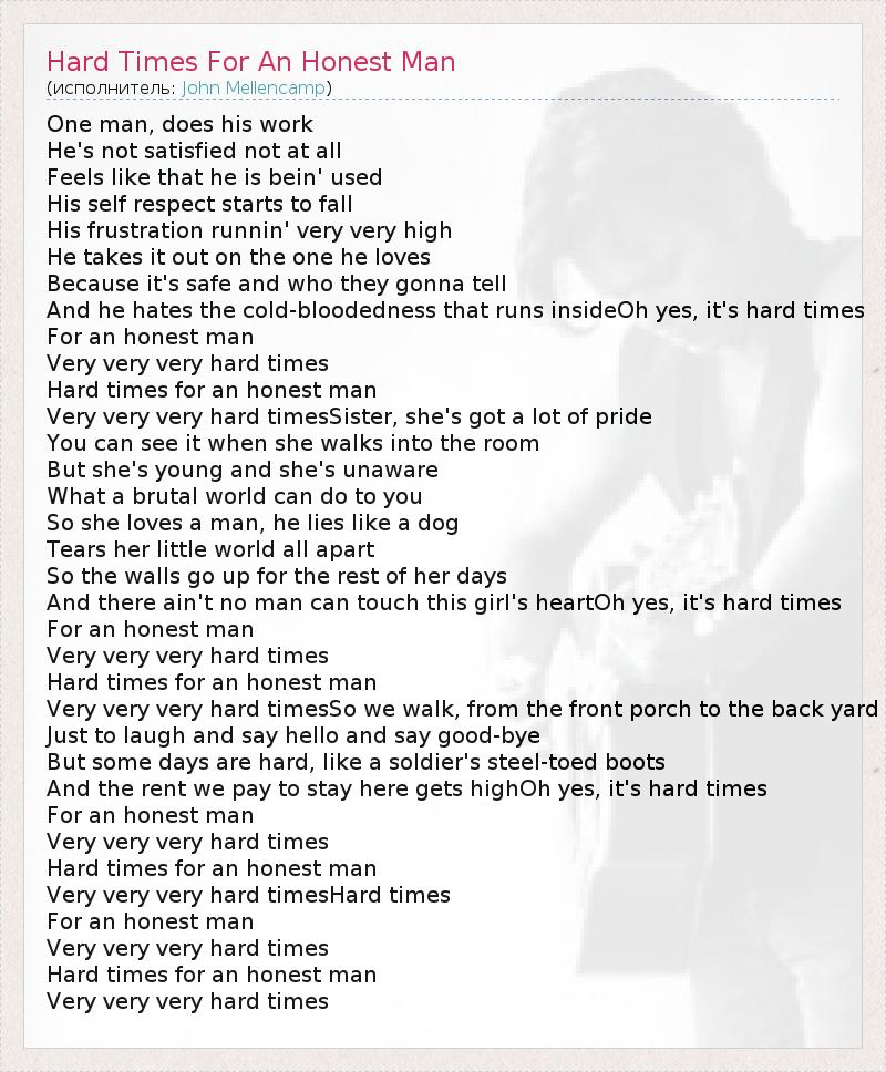 А как ты думаешь, о чем песня "Hard Times For An Honest Man" ?