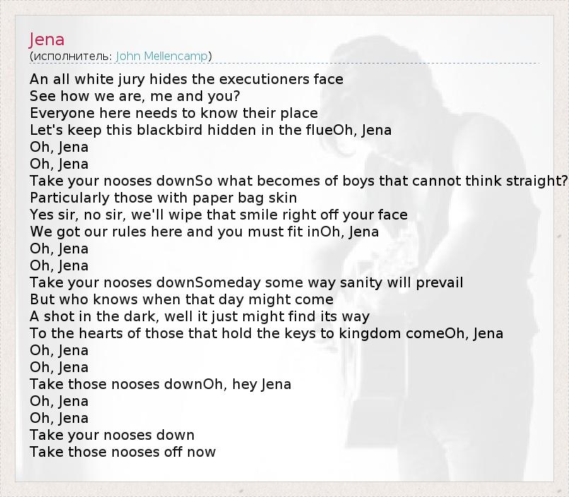 To the hearts of those that hold the keys to kingdom comeOh, Jena