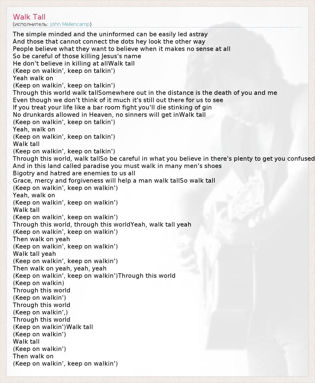 А как ты думаешь, о чем песня "Walk Tall" ?
