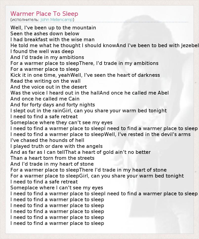 А как ты думаешь, о чем песня "Warmer Place To Sleep" ?