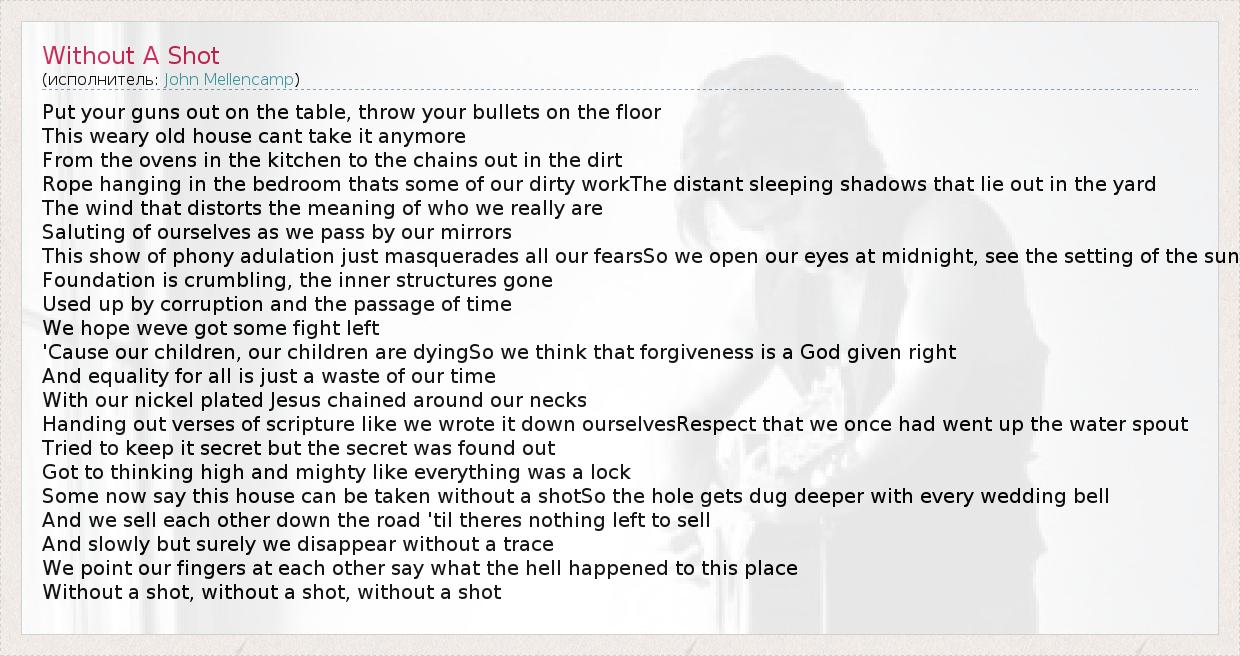 А как ты думаешь, о чем песня "Without A Shot" ?