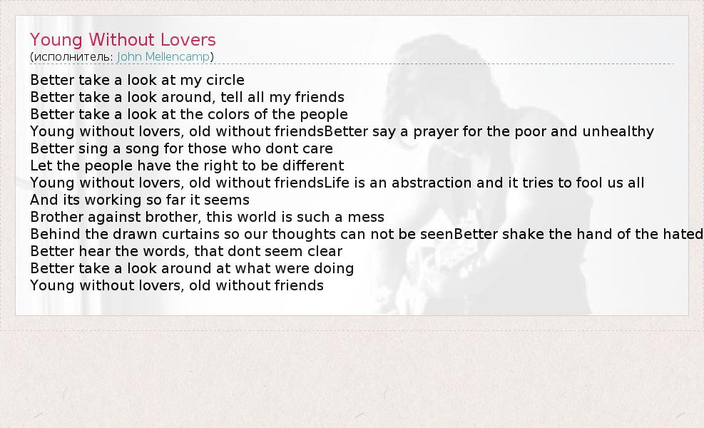 А как ты думаешь, о чем песня "Young Without Lovers" ?