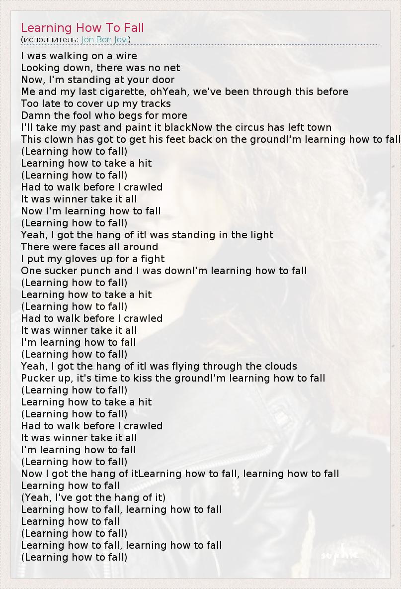 А как ты думаешь, о чем песня "Learning How To Fall" ?
