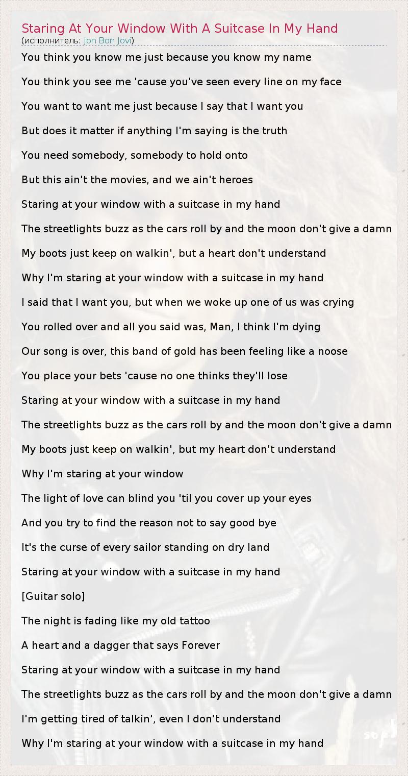 ГлавнаяИсполнителиJon Bon JoviStaring At Your Window With A Suitcase In My Hand