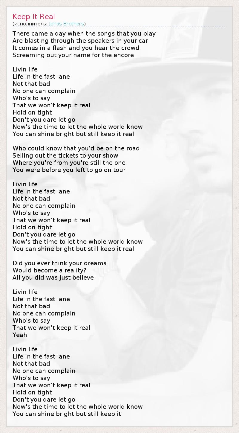 А как ты думаешь, о чем песня "Keep It Real" ?