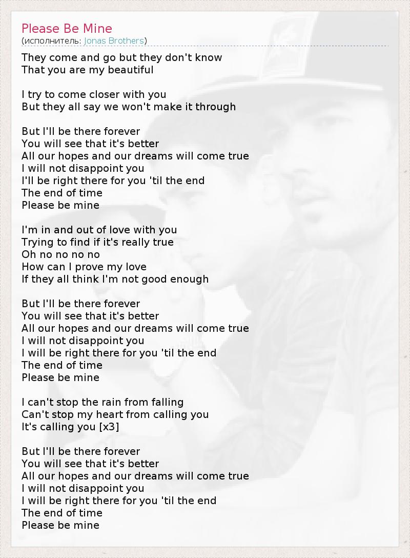 А как ты думаешь, о чем песня "Please Be Mine" ?
