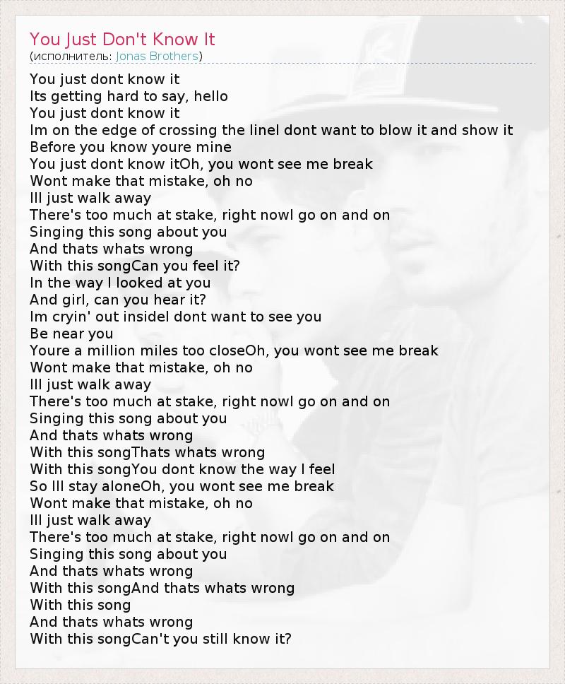 А как ты думаешь, о чем песня "You Just Don't Know It" ?