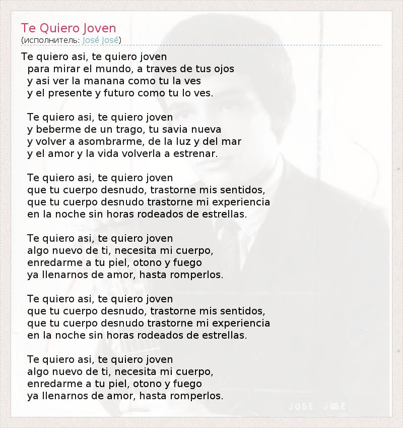А как ты думаешь, о чем песня "Te Quiero Joven" ?