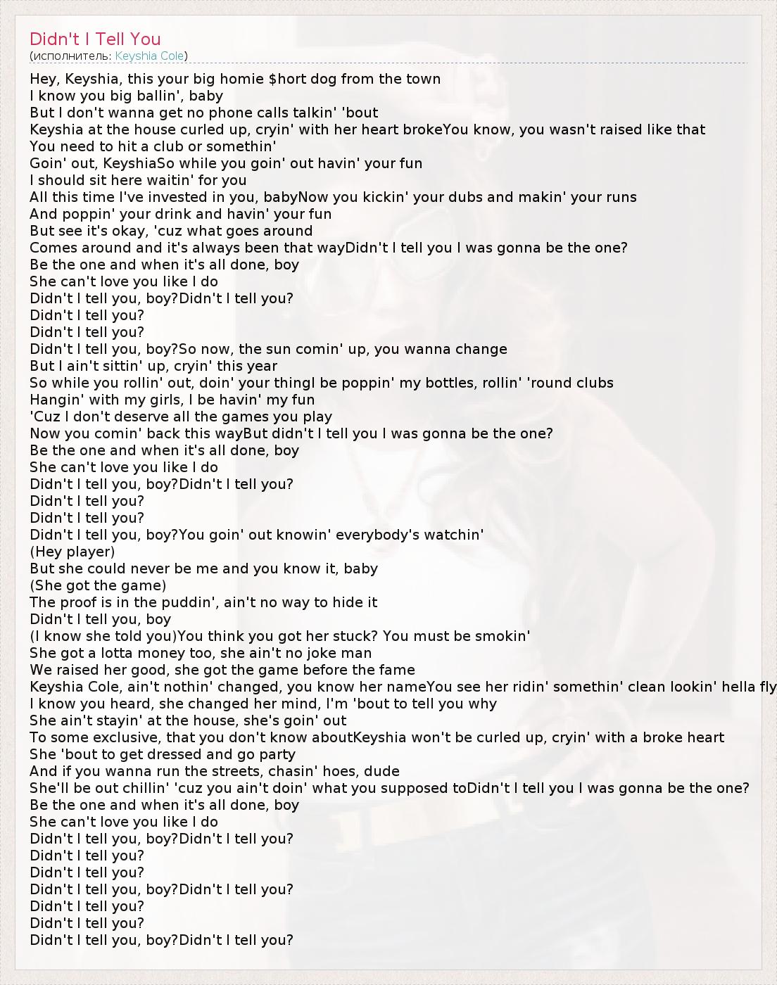 А как ты думаешь, о чем песня "Didn't I Tell You" ?
