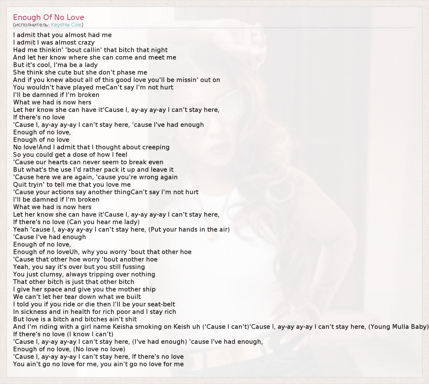 А как ты думаешь, о чем песня "Enough Of No Love" ?
