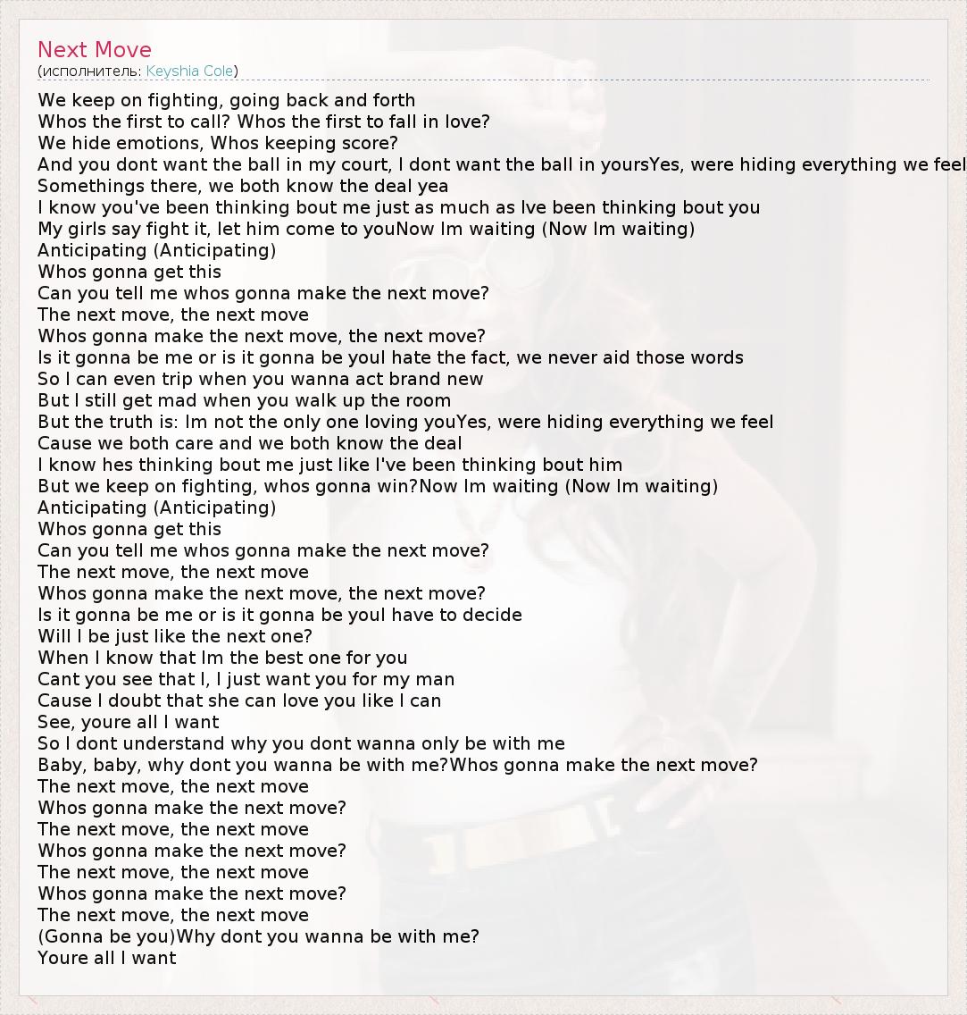 Baby, baby, why dont you wanna be with me?Whos gonna make the next move?