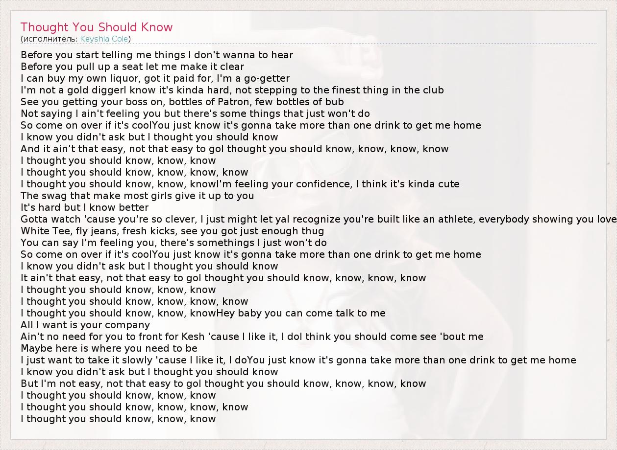 ГлавнаяИсполнителиKeyshia ColeThought You Should Know