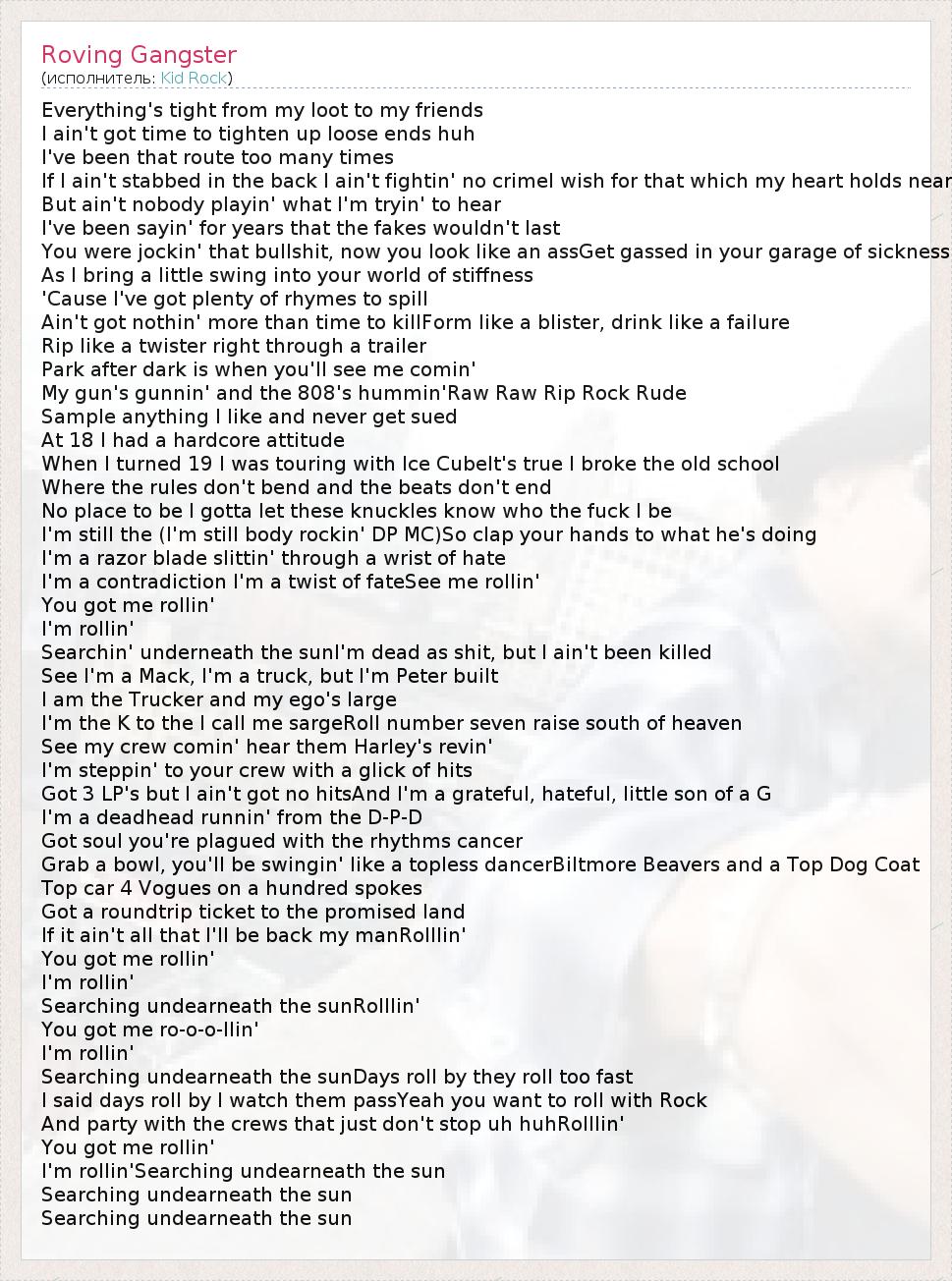 А как ты думаешь, о чем песня "Roving Gangster" ?