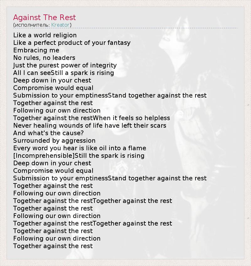 А как ты думаешь, о чем песня "Against The Rest" ?