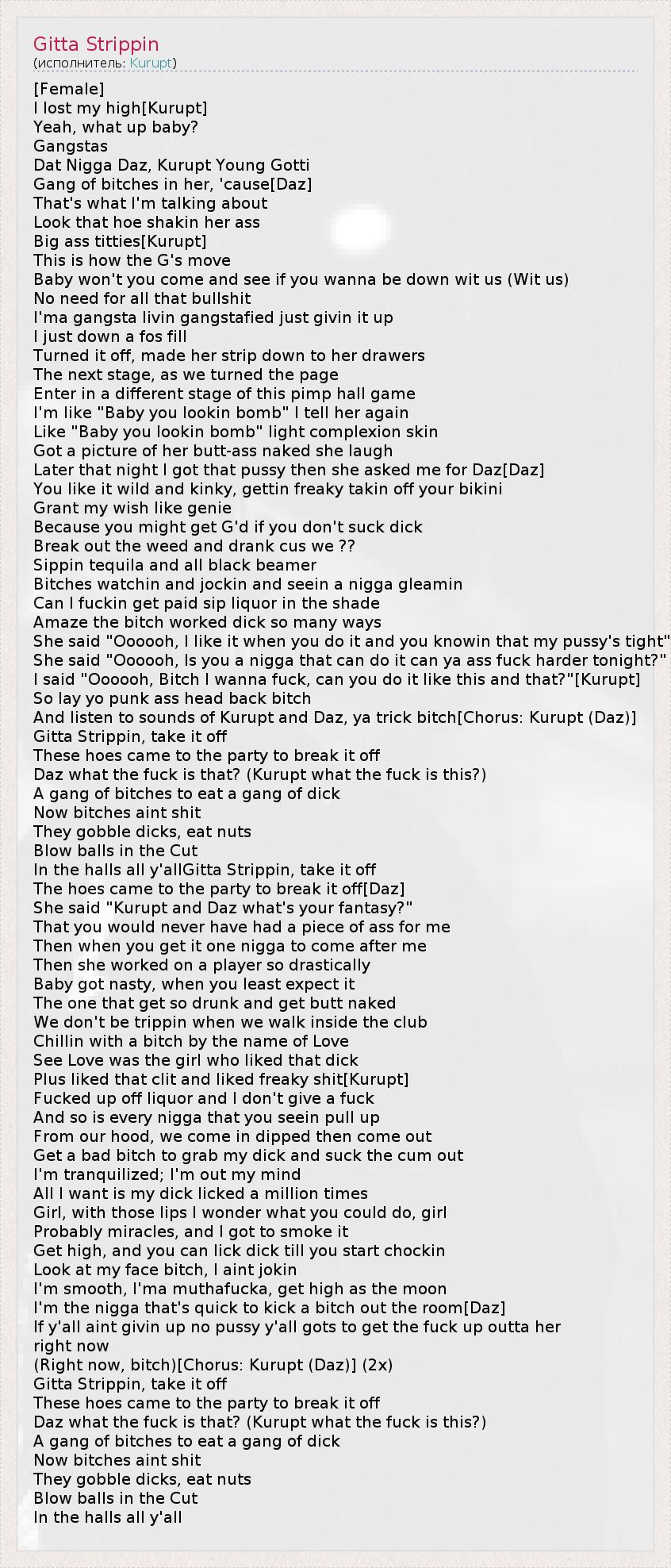 А как ты думаешь, о чем песня "Gitta Strippin" ?