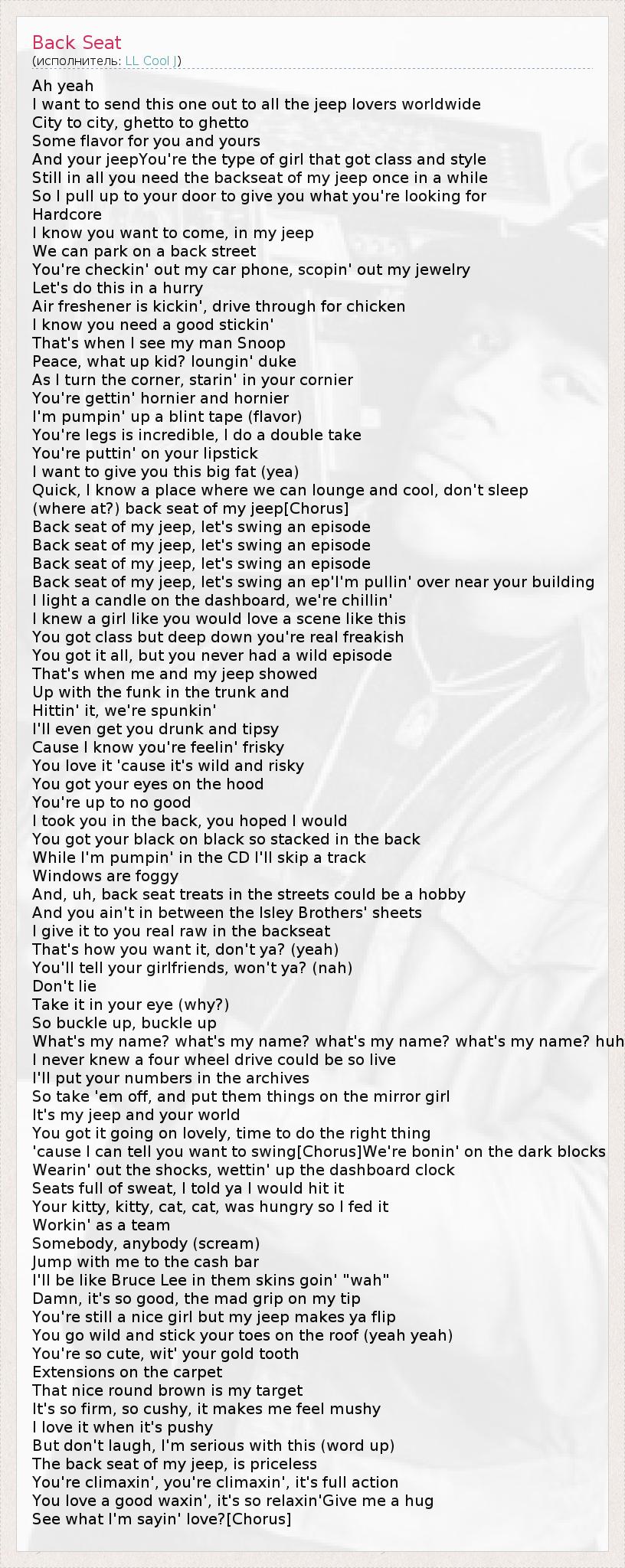 А как ты думаешь, о чем песня "Back Seat" ?