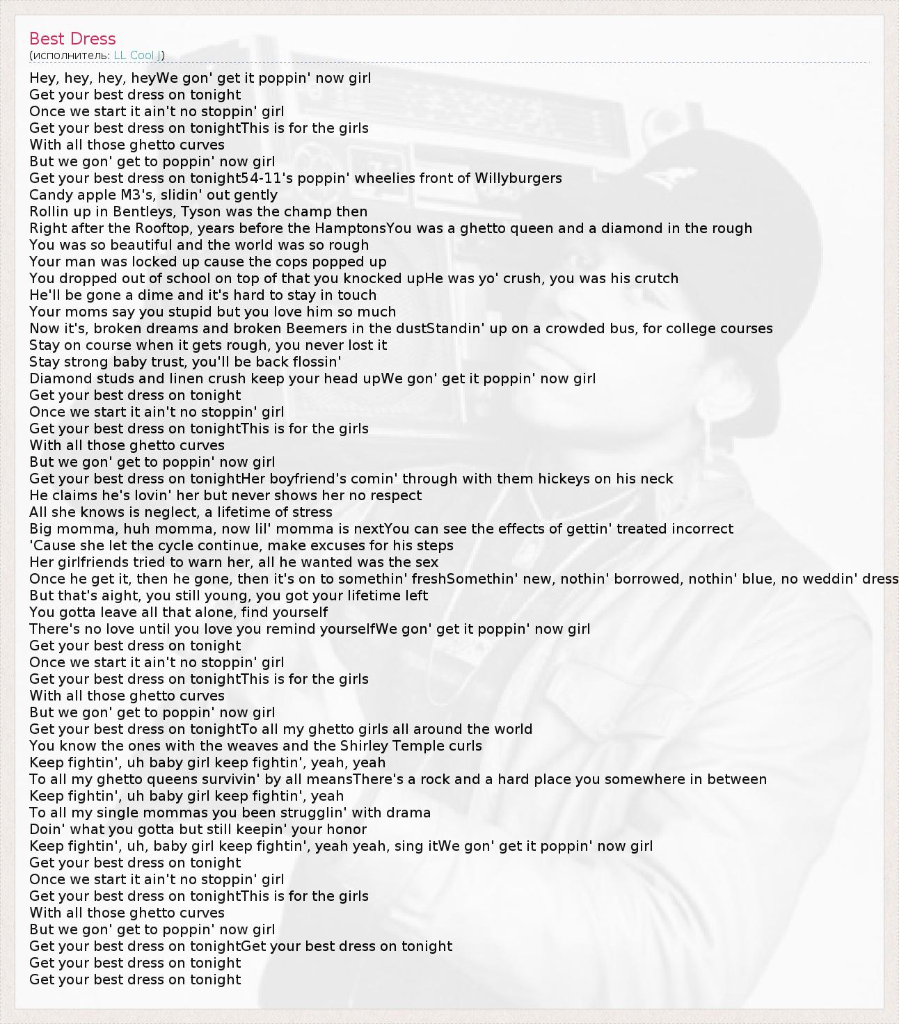 Get your best dress on tonightTo all my ghetto girls all around the world