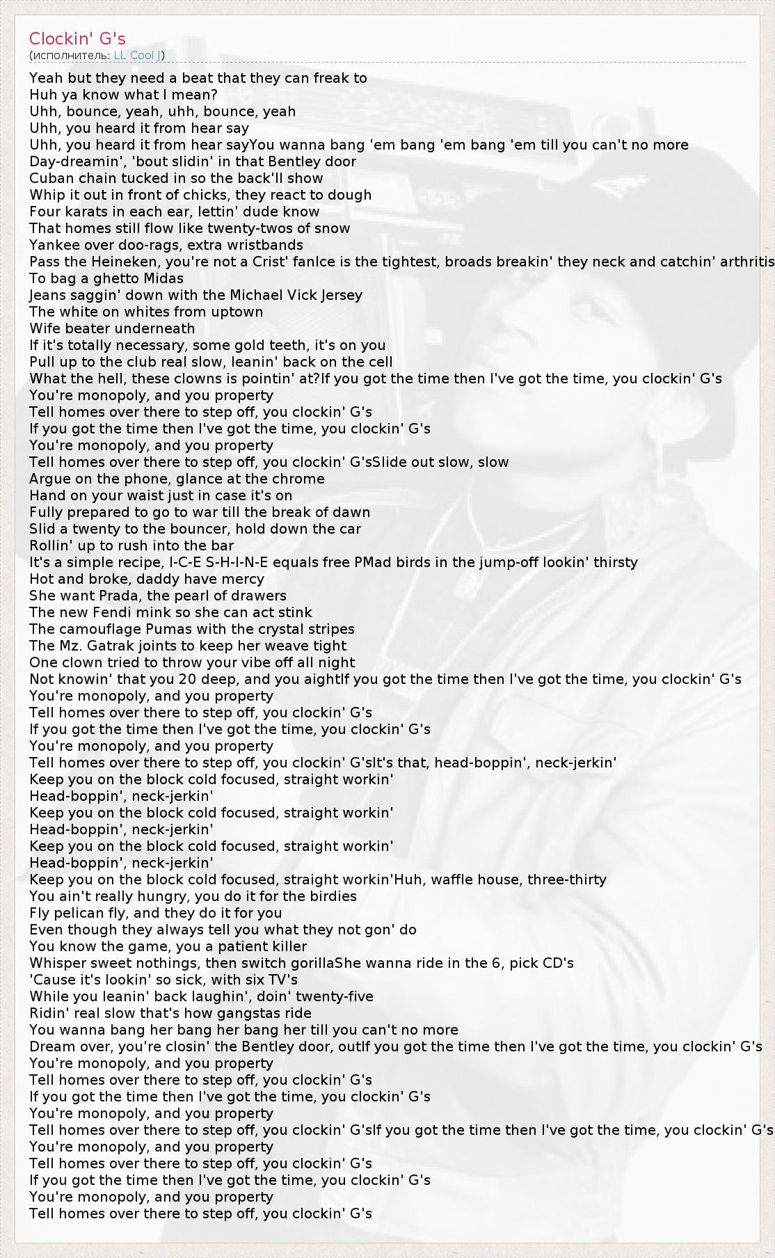 А как ты думаешь, о чем песня "Clockin' G's" ?