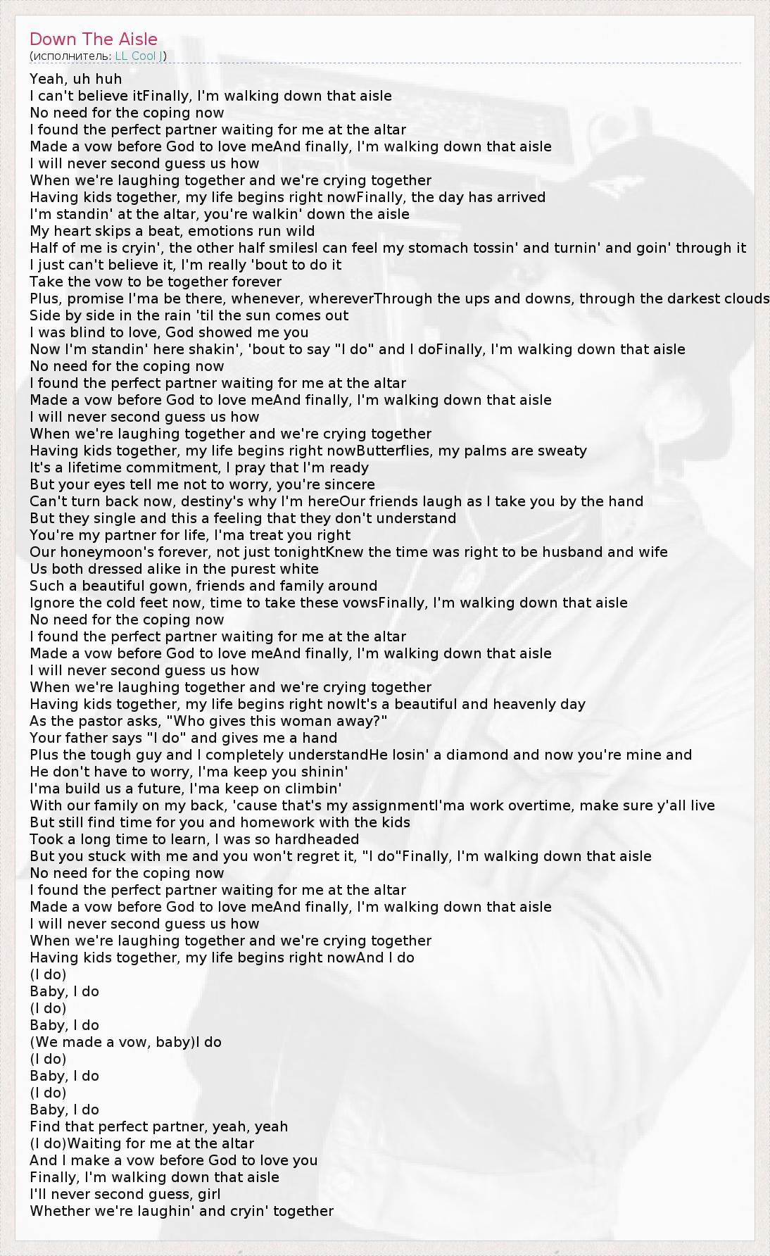А как ты думаешь, о чем песня "Down The Aisle" ?