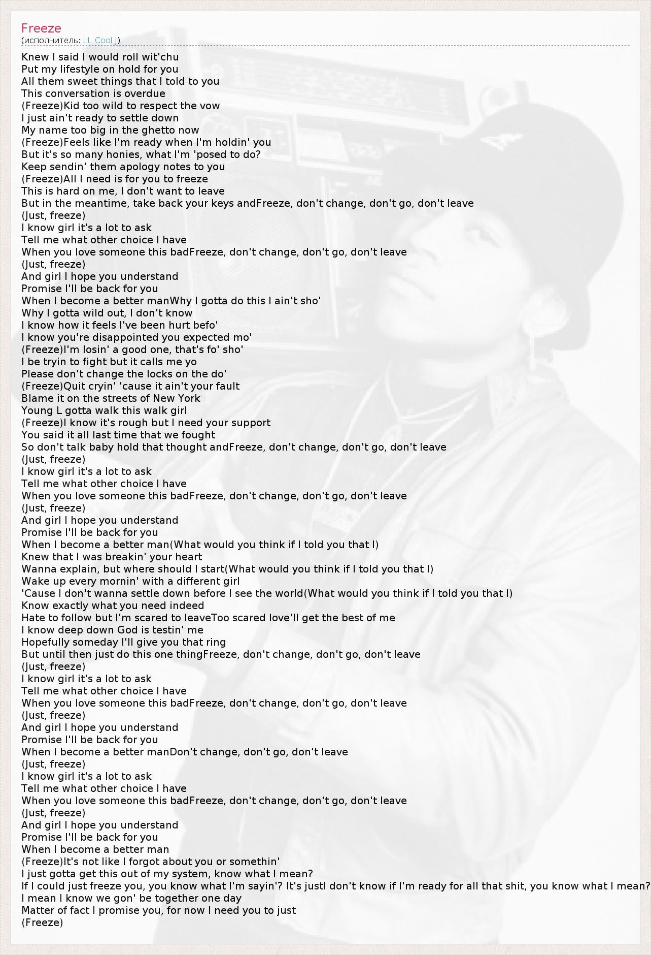But in the meantime, take back your keys andFreeze, don't change, don't go, don't leave