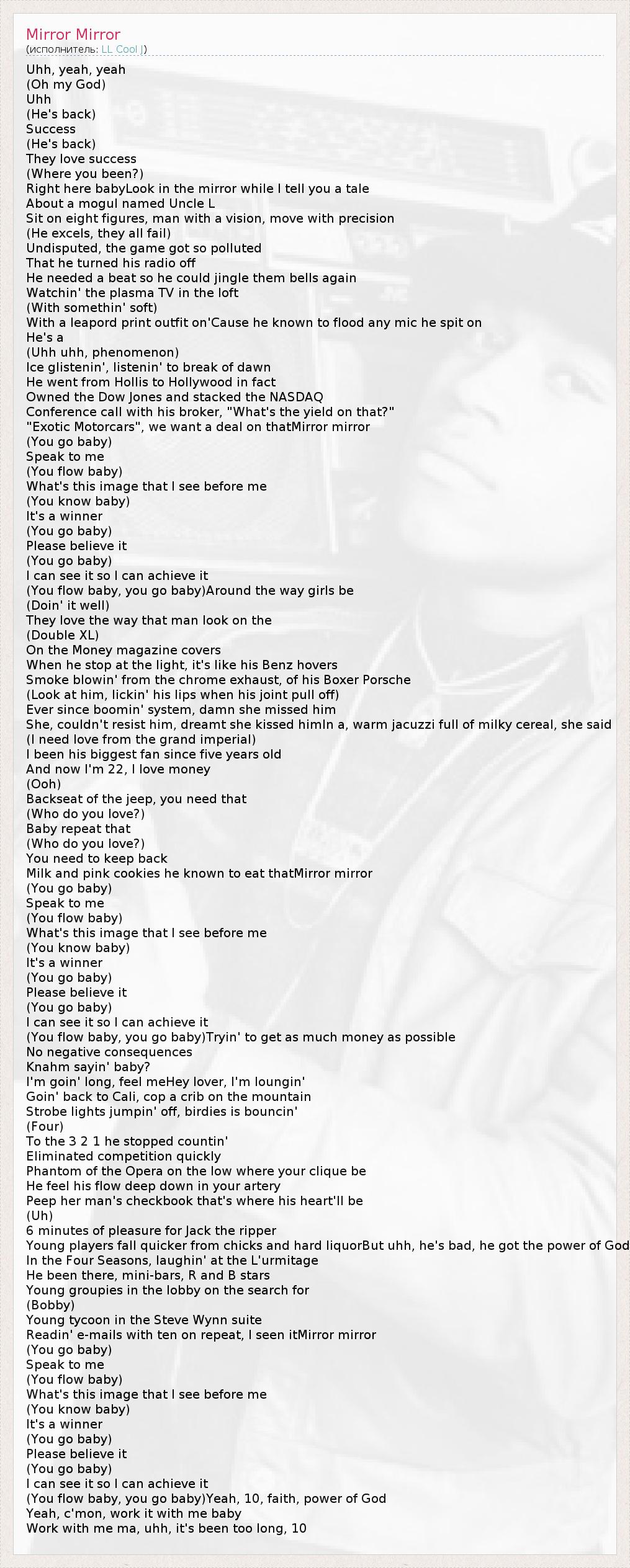А как ты думаешь, о чем песня "Mirror Mirror" ?