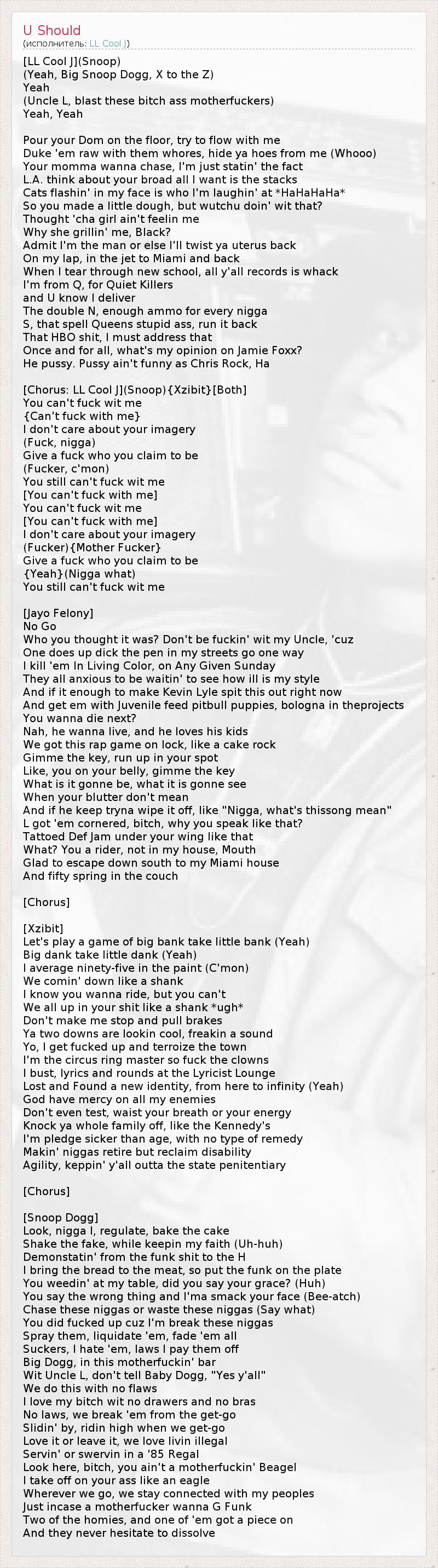 [Chorus: LL Cool J](Snoop){Xzibit}[Both]