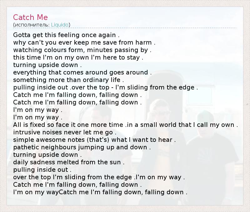 I'm on my wayCatch me I'm falling down, falling down .
