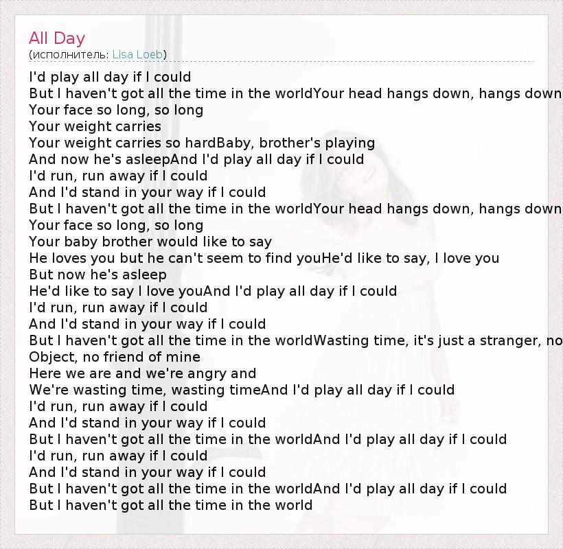 But I haven't got all the time in the worldAnd I'd play all day if I could
