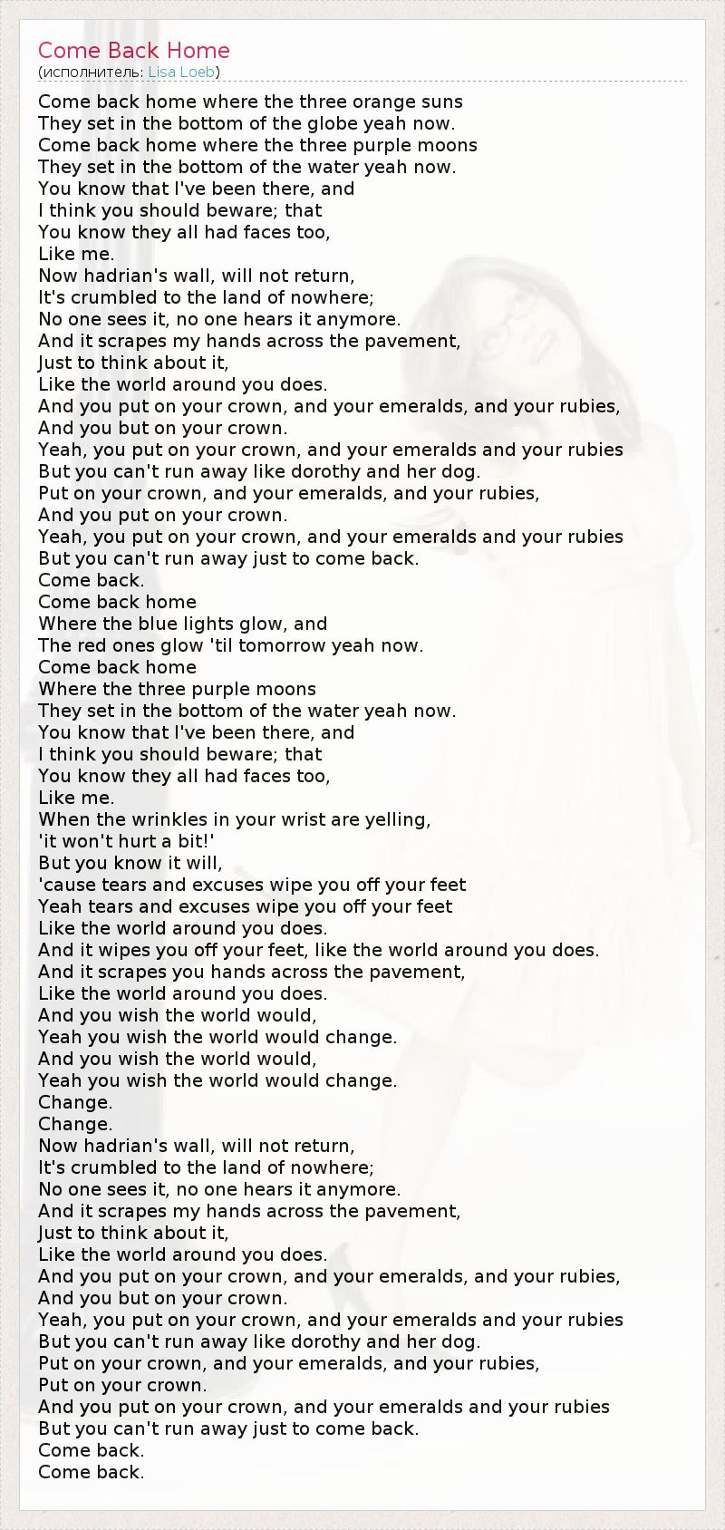 А как ты думаешь, о чем песня "Come Back Home" ?
