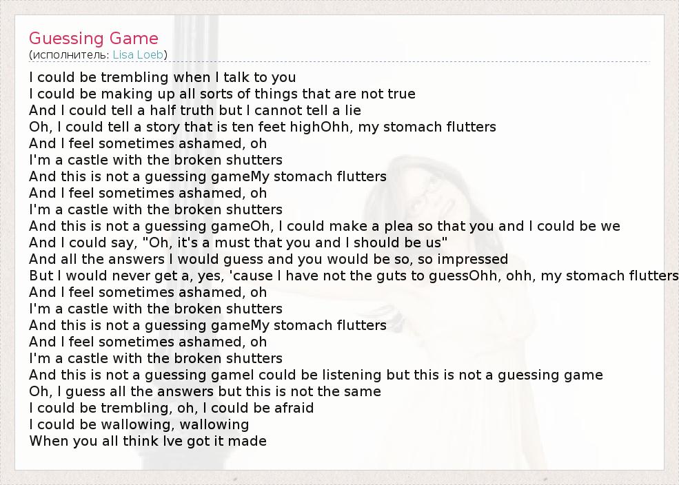 А как ты думаешь, о чем песня "Guessing Game" ?