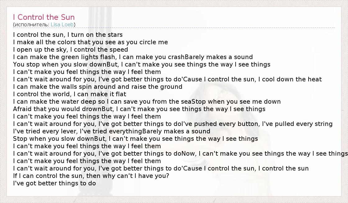 А как ты думаешь, о чем песня "I Control the Sun" ?
