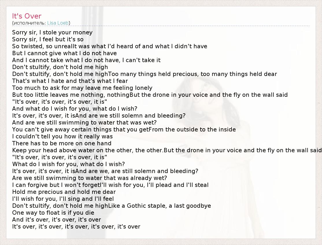It's over, it's over, it isAnd are we still solemn and bleeding?