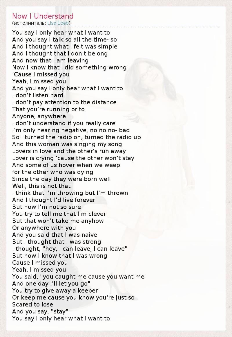 А как ты думаешь, о чем песня "Now I Understand" ?