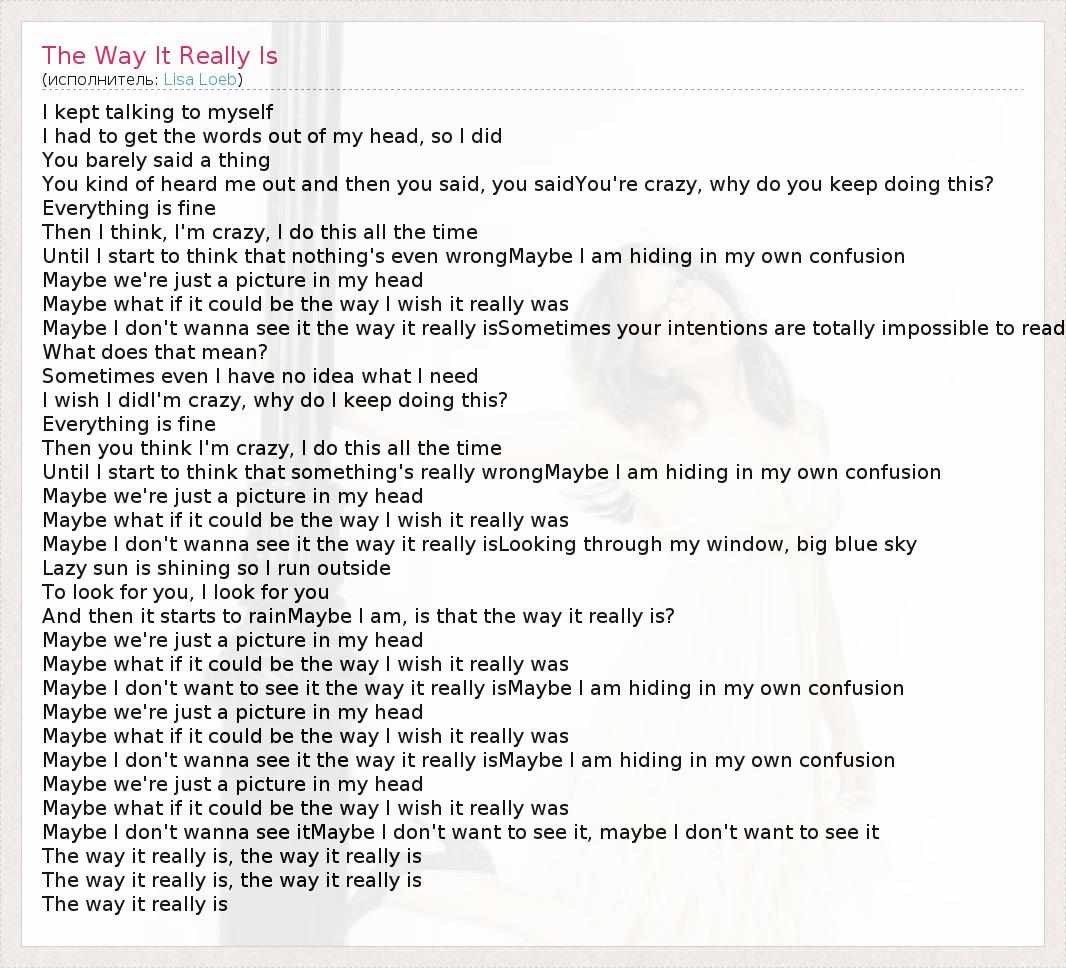 А как ты думаешь, о чем песня "The Way It Really Is" ?