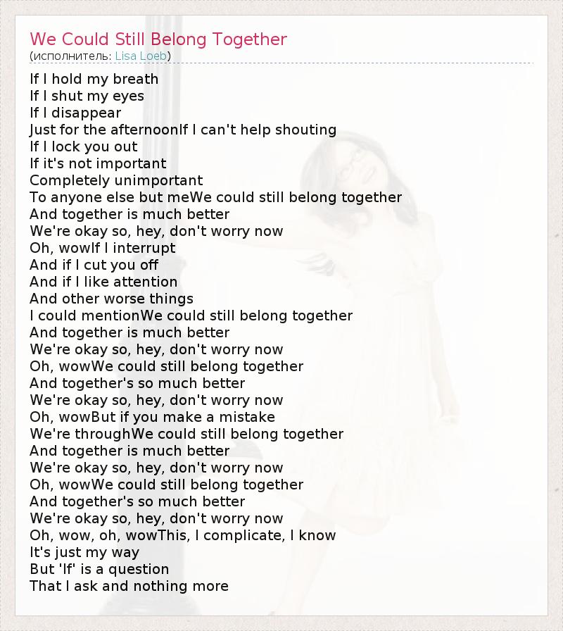 А как ты думаешь, о чем песня "We Could Still Belong Together" ?